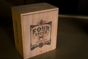 Got my hands on an ACTUAL Four Kicks box! No prototype – this is exactly what they will look like. Now if it were only full. Less than a month to go!